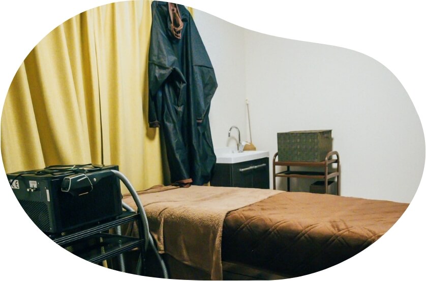 静かな一軒家の一室で、脱毛・よもぎ蒸し・フェイシャルなど、心と体を整える多彩なメニューをご用意しています。